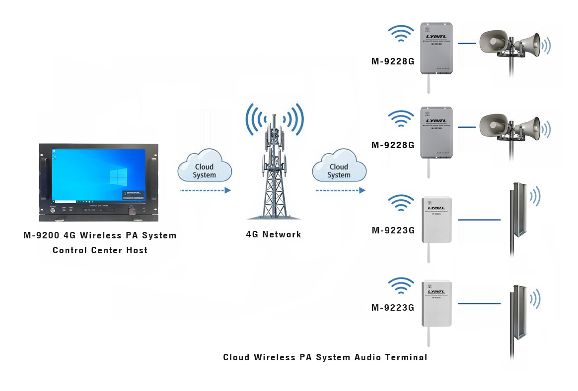 Equipped with 4G mobile network connectivity, the M-9228G enables fast deployment without wired network infrastructure, making it an ideal solution for emergency broadcasting, smart city projects, rural public address systems, construction sites, campuses, and temporary installations.