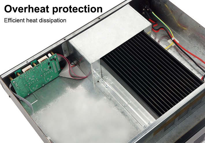 Temperature-controlled continuous variable speed fan ensures optimal performance without overheating.
